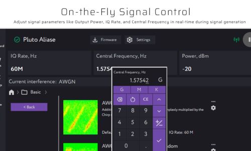 - Kompatibilität mit Adalm Pluto SDR: Nutzt benutzerdefinierte Firmware, um IQ-Daten effizient zu verarbeiten und zu übertragen.